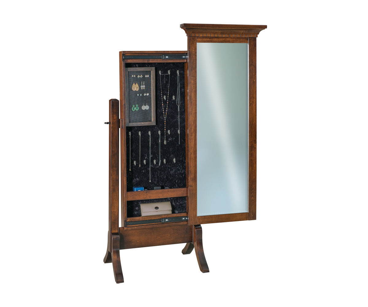 Options: • Also available with a sliding mirror • Sliding mirror conceals a jewelry storage